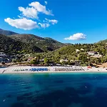 Es bietet einen privaten Zugang zu einem privaten Strand mit Lounge-Sesseln und Sonnenschirmen. Es bietet den Gästen Wandern, Radfahren und Angeln vor Ort.